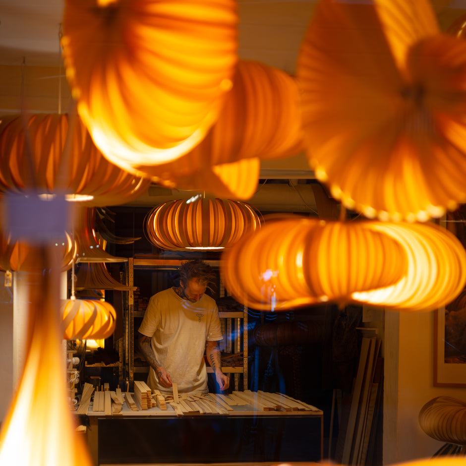 Every lamp and sculpture at Flaco Design is shaped by hand in the workshop on Jægersborggade. With a deep respect for materials and process, Casper Madsen creates timeless pieces that blend form, function, and artistry. Each design carries the warmth of fire and the precision of craftsmanship—made to bring character into any space.